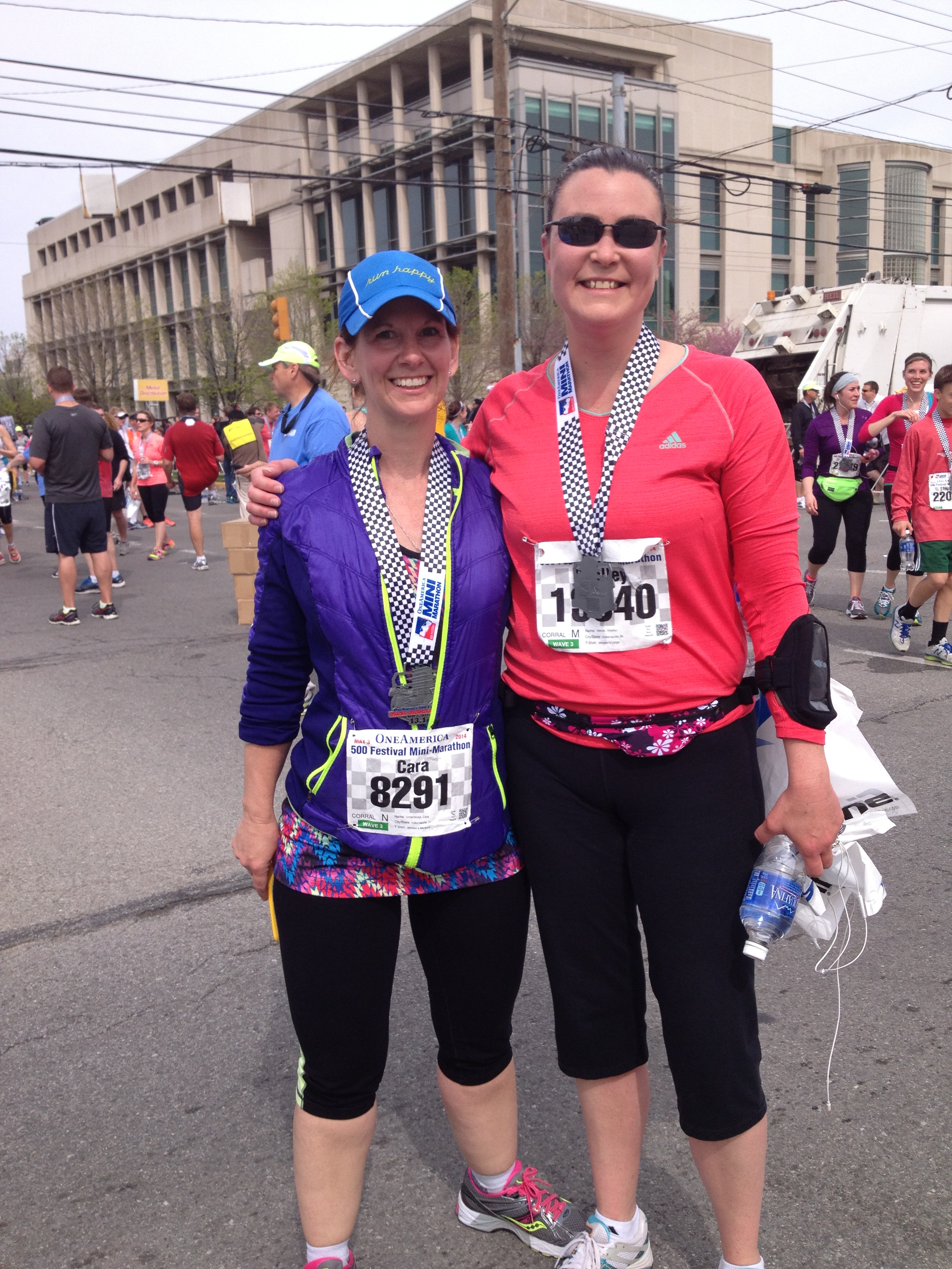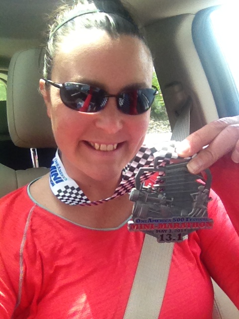 The day before the Indy Half Marathon, another coworker we’ll just refer to as “Tim” said, “I’ll see you at the Mini tomorrow!”  With my head turned sideways, I thought, “He clearly doesn’t read my blog”.  “No, no…I am not running tomorrow.  I had an upper respiratory infection, was on antibiotics, I’ve only been running 3 miles at a time…no way I can run the mini tomorrow…good luck to you though!!”  Tim being ever so knowledgeable about the Indy half marathon says to me “Oh you will be fine!  I’ve only been running 3 miles a day…the festivities are fun…you will be so distracted…and if you get tired…walk!” I had not considered the walking part.  If I get tired, walk.  I can certainly walk.  OK!  I’ll do it.  And so I am the worst quitter ever.  I was back into running a half marathon, the day before!  Yikes!!